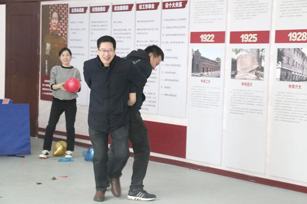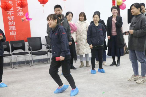 還有我們充滿趣味性的雙人背靠背夾氣球互動游戲,兩位美女主持人熱情洋溢,朝氣蓬勃,得到了員工一致性好評。