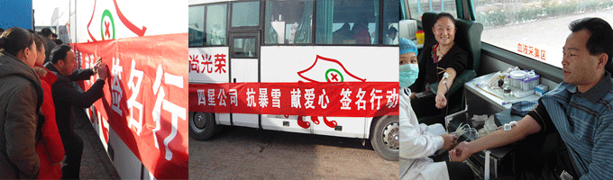 于2010年11月,河北省遭遇60年罕見的暴風雪,相關地區(qū)受災嚴重,一方群眾急需血液,但血庫供血告急,當公司接到上級政府救援通知后,及時動員全體職工無償獻血,奉獻愛心活動。