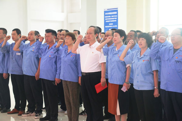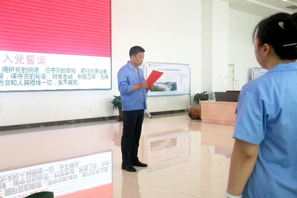 黨支部書記、董事長(zhǎng)王煥一,支部副書記、行政副總李蘭舟, 公司顧問(wèn)王建民,副總經(jīng)理范俊英,副總經(jīng)理王錦松,公司總工程師王希偉,公司顧問(wèn)段玉新等黨員領(lǐng)導(dǎo)干部,公司全體黨員、部分提出入黨申請(qǐng)的積極分子等110人參加或列席活動(dòng)。李蘭舟主持儀式。